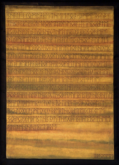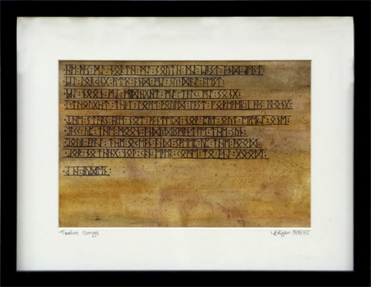 Lisa’s preferred text for her script paintings is to use a runic alphabet. These originate from early Norse/Germanic origins, with the earliest inscriptions from around 150 AD. Initially, the paintings used Shakespeare’s Sonnet XVIII (Shall I compare thee to a summer’s day) and the Roman poet Virgil’s epic Latin poem Aeneid. The concept has been picked up by several commissions where clients have proposed their favourite literature pieces and have them rendered in this way. Among these have been W. H. Auden’s 12 Songs ('Stop all the clocks') and Elizabeth Barrett Browning’s Sonnets from the Portuguese (‘How Do I Love Thee’), both intended to commemorate significant anniversaries. Scripts can be produced in either Oil or Watercolour.