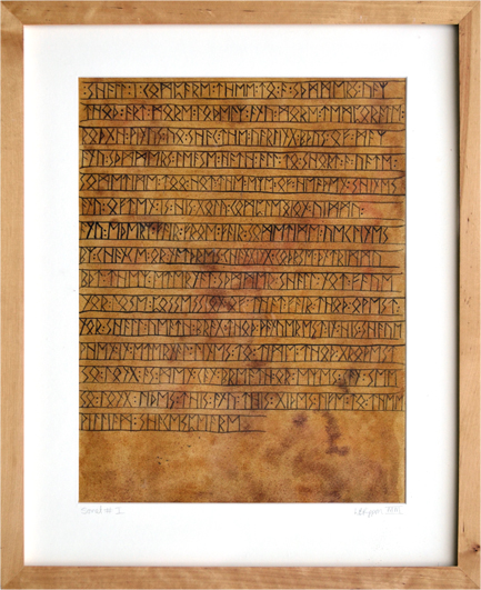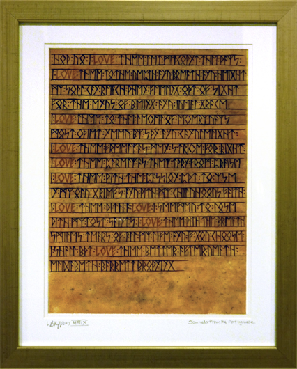 The Script series of paintings comes about from Lisa’s interest in Runes and other ancient languages. She had the thought - What if some of the most famous and recognisable poems and prose from literature had actually originated from earlier times and were to be discovered written on ancient manuscripts or hewn into stone in some arcane language?